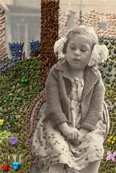 „Ich habe das Foto ein Jahr mit mir herumgetragen“, erzählt die Fotografin Ulrike Wieser, deren zehnjährige Großcousine Elfi Schlager ebenfalls in Hartheim getötet wurde. „In meiner Familie gab es schon vor Hitlers Machtergreifung illegale Nazis. Deswegen wurde über die Ermordung Elfis nicht geredet – wegen der Beteiligung. Und wegen der Scham, dass man ein behindertes Kind hat!“ Wieser bestickte Fotos weiterer ermordeter Menschen beziehungsweise ihrer Geburtsorte: „Man sticht immer wieder durch das Bild durch – es ist eine kraftvolle Erinnerungsarbeit.“